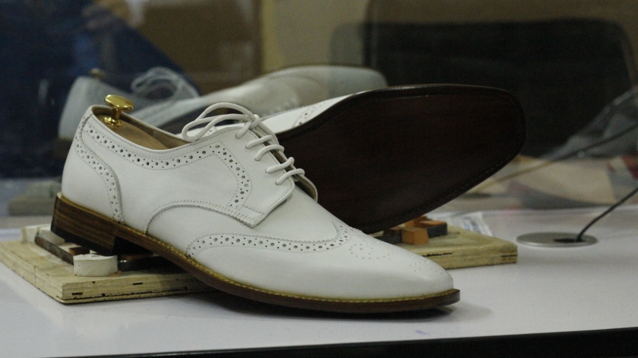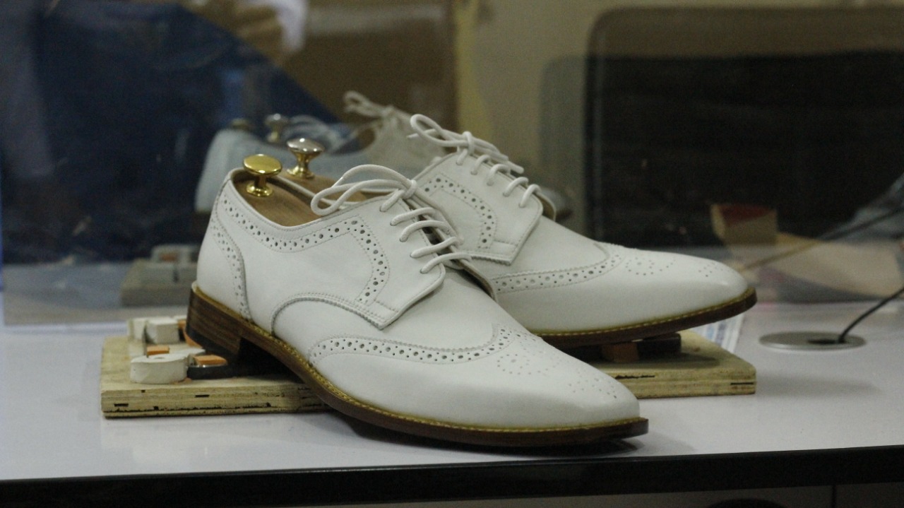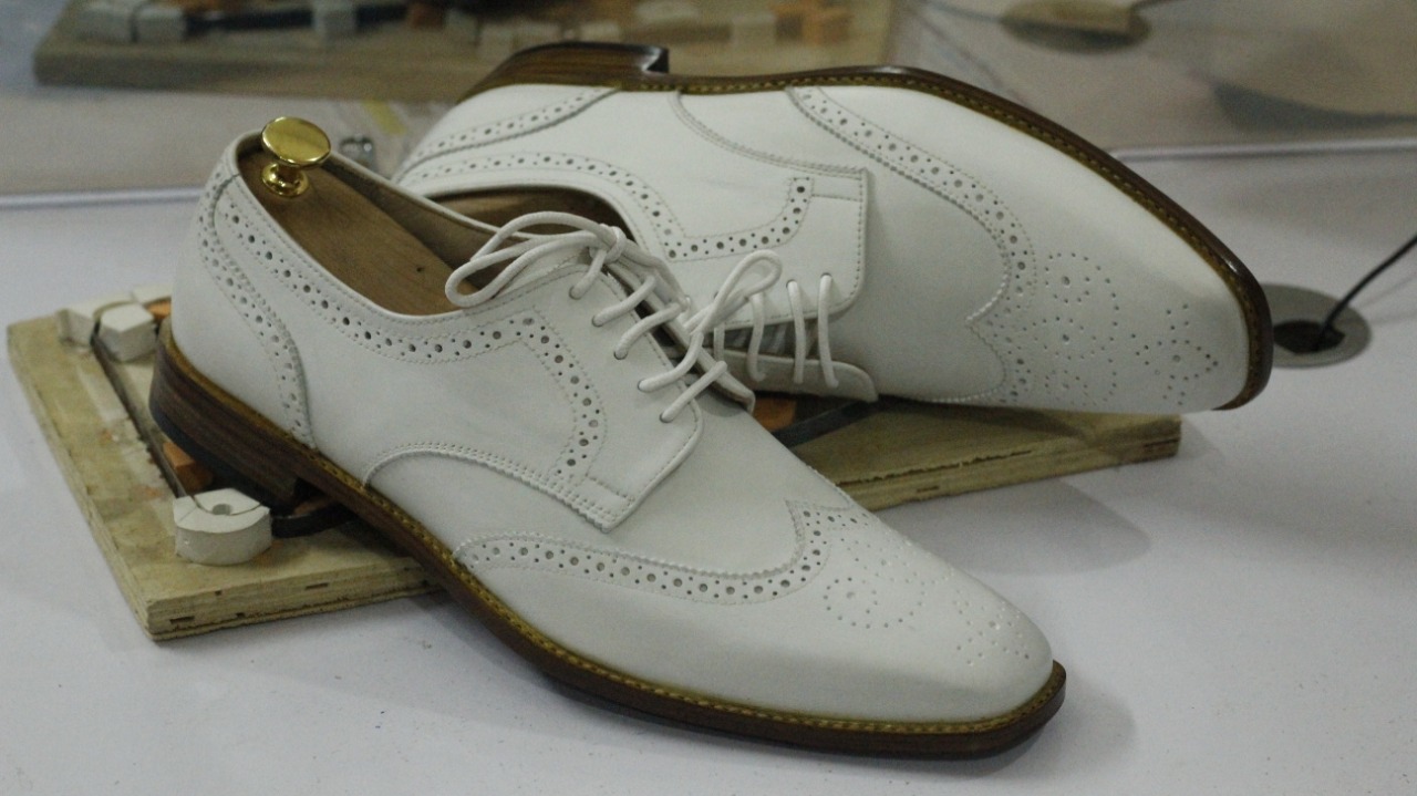 Handmade White Wing Tip Leather Shoes,Men Oxford Party Wear Shoes