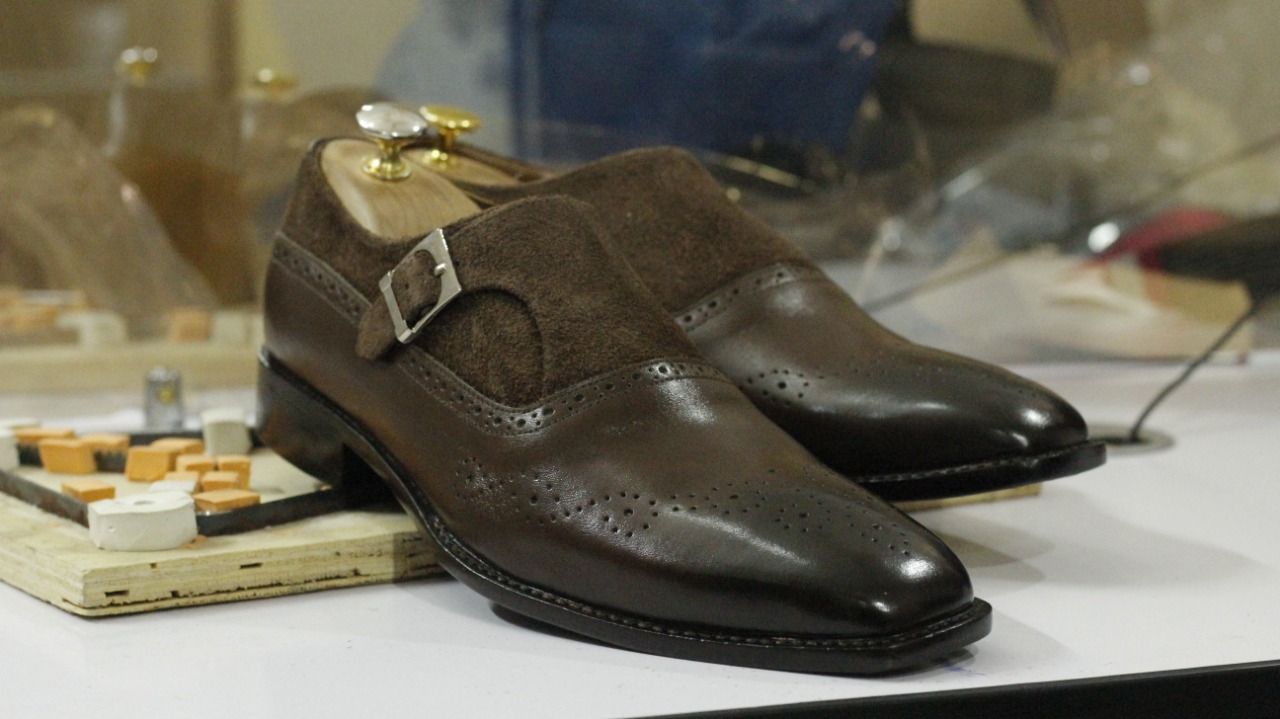 Handmade Brown Leather Suede Monk Straps Shoes,Men's Oxford Shoes