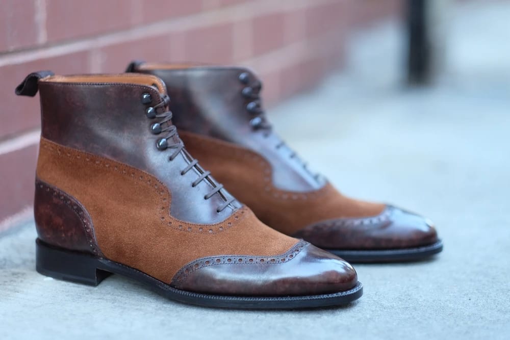 Handmade Brown Square Toe Ankle Lace Up Leather Suede Boot,Men's Dress Boot