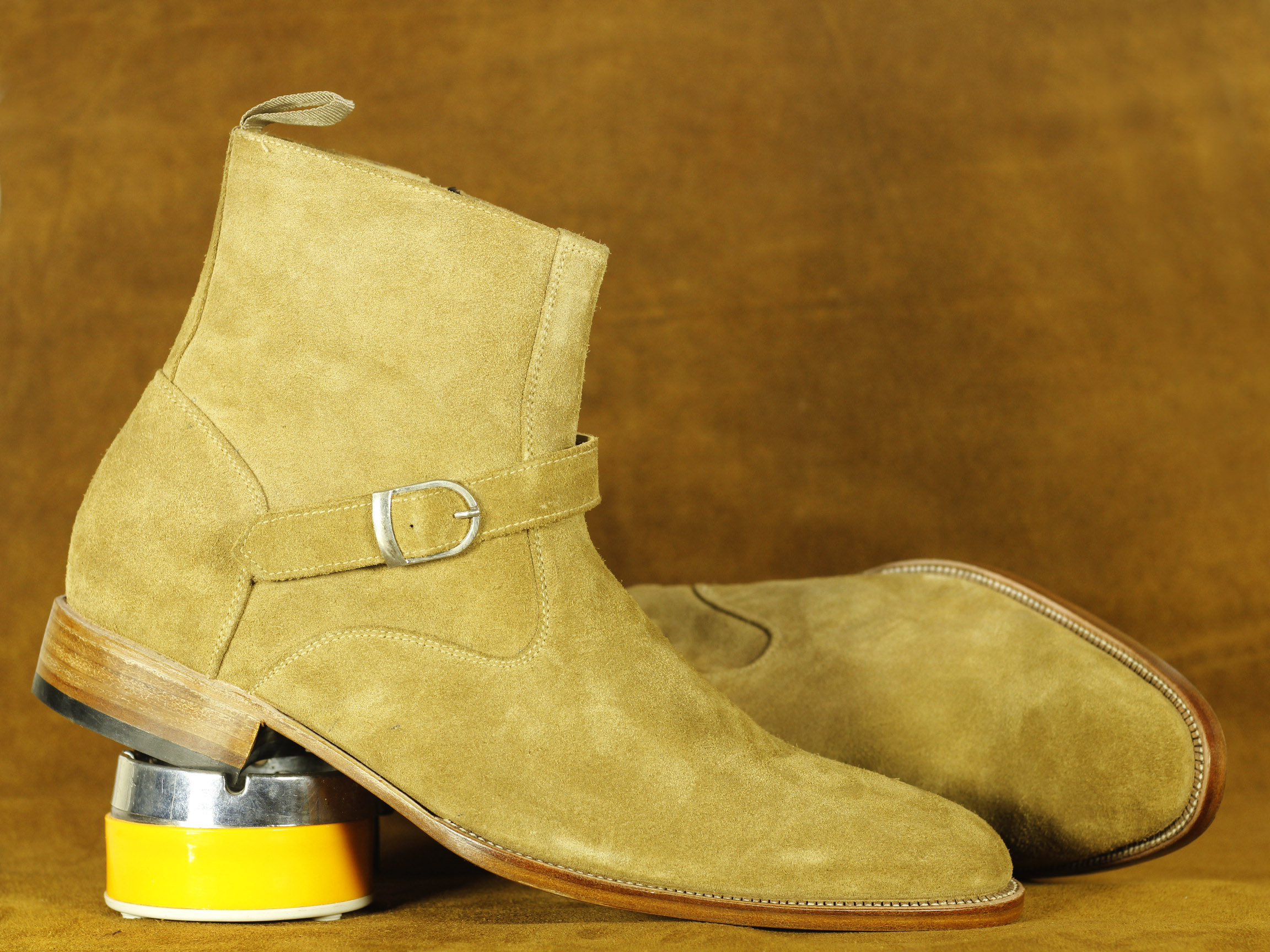 New Handmade Men's Fashion Beige Color Suede Ankle Boots Jodhpurs Boots,Oxford Boot
