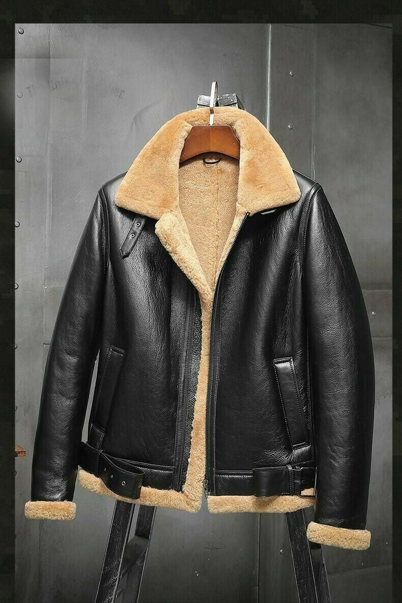 Men's Aviator RAF B3 Flying Bomber Fur Shearling Sheepskin Leather Jackets