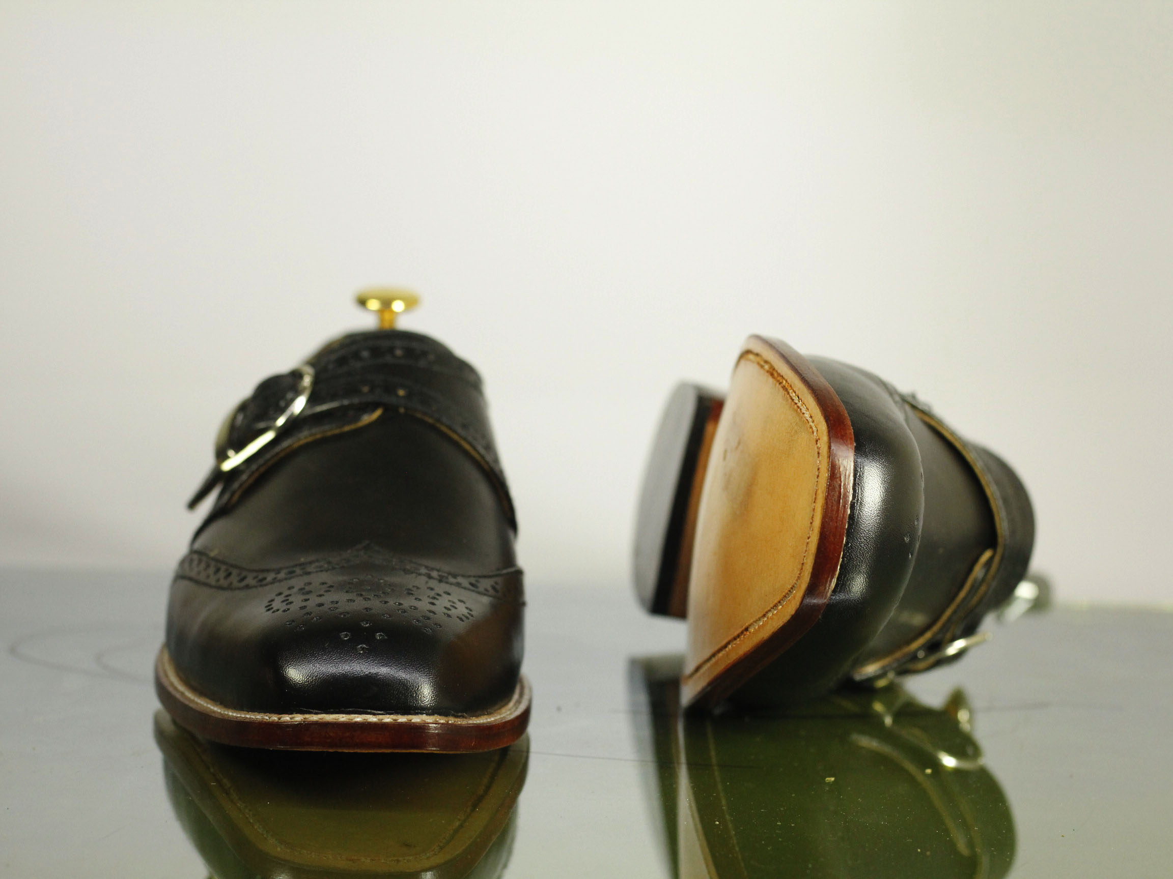 Handmade Men's Black Wing Tip Monk Shoes, Men's Leather Dress Shoes