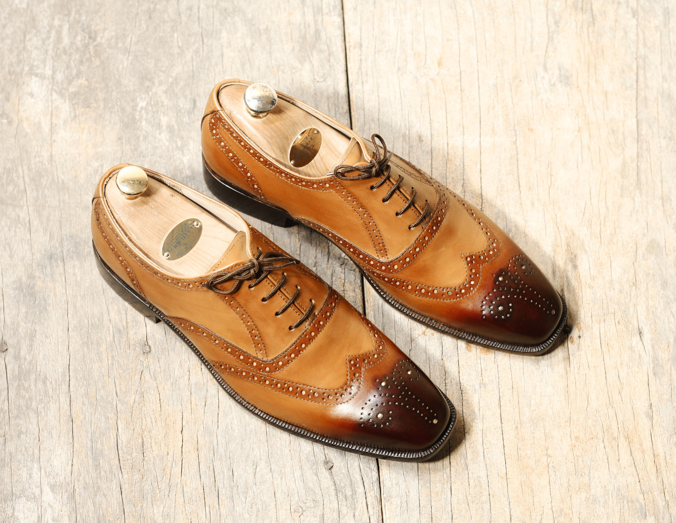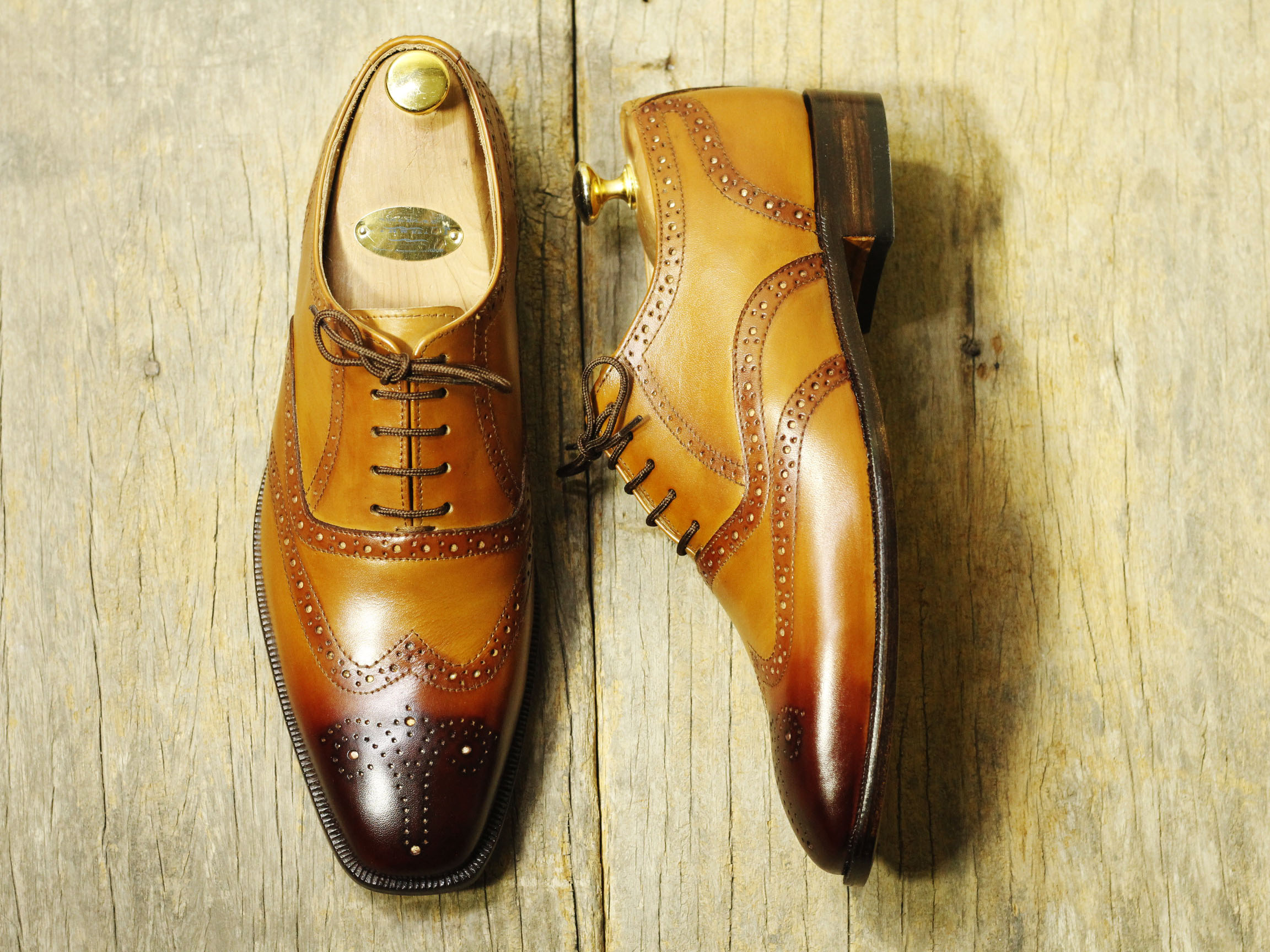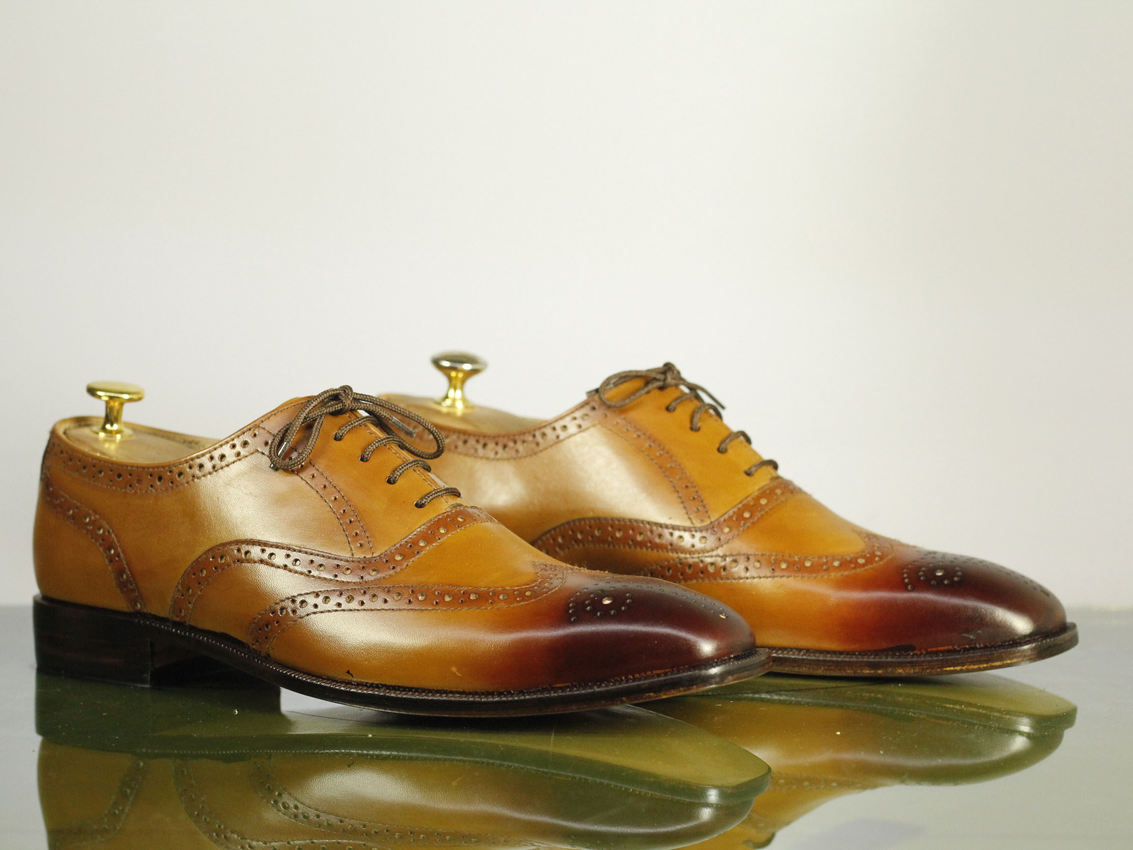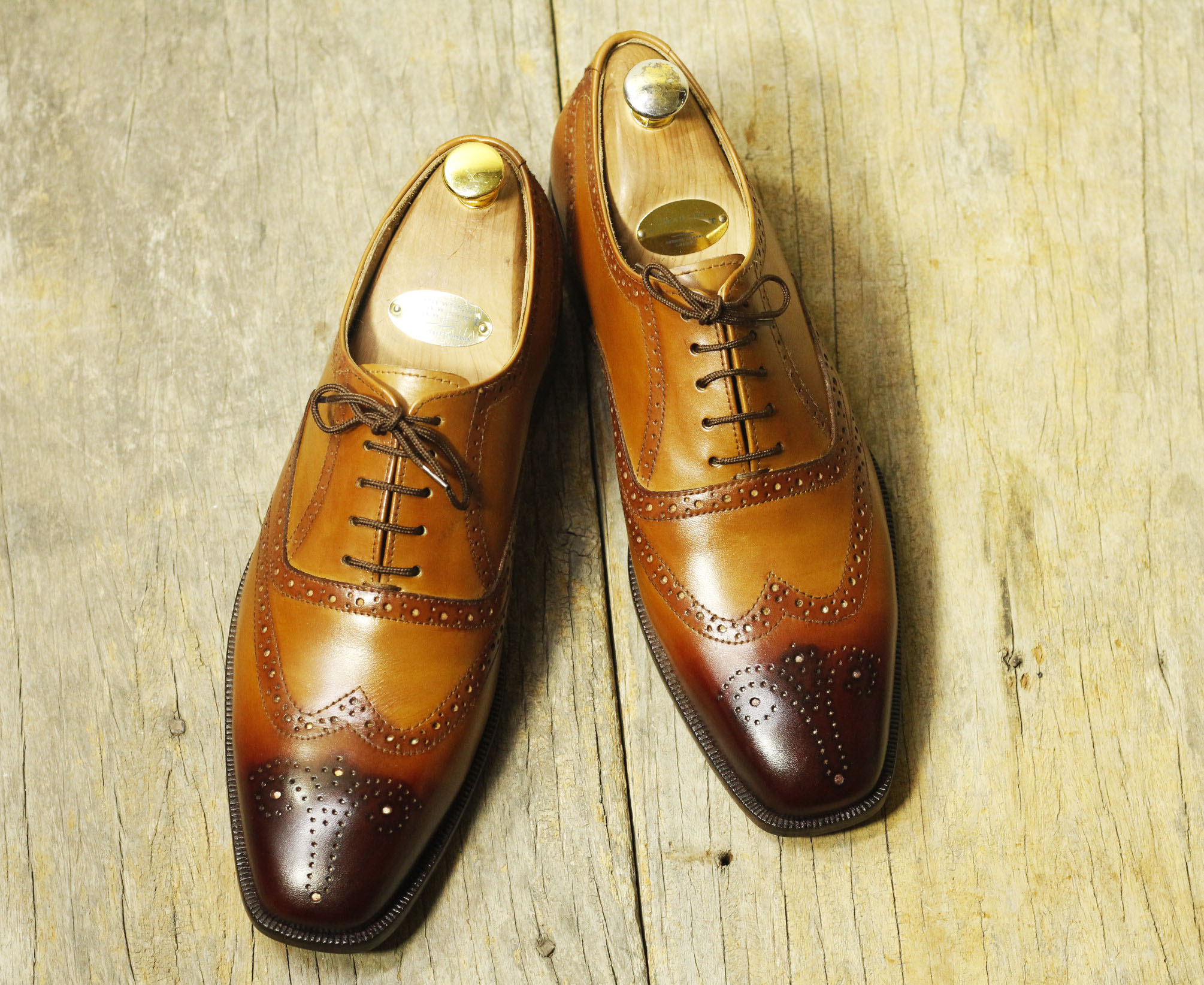 Handmade Men's Tan Wing Tip Brogues Shoes, Men's Leather Dress Shoes
