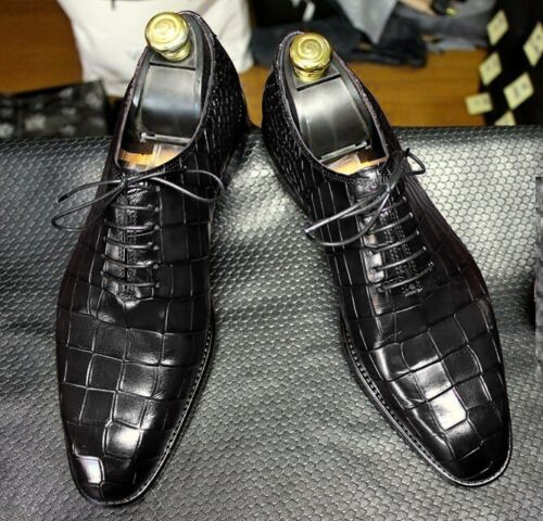 Handmade Black Alligator Leather Shoes,Men Dress Oxford Shoes