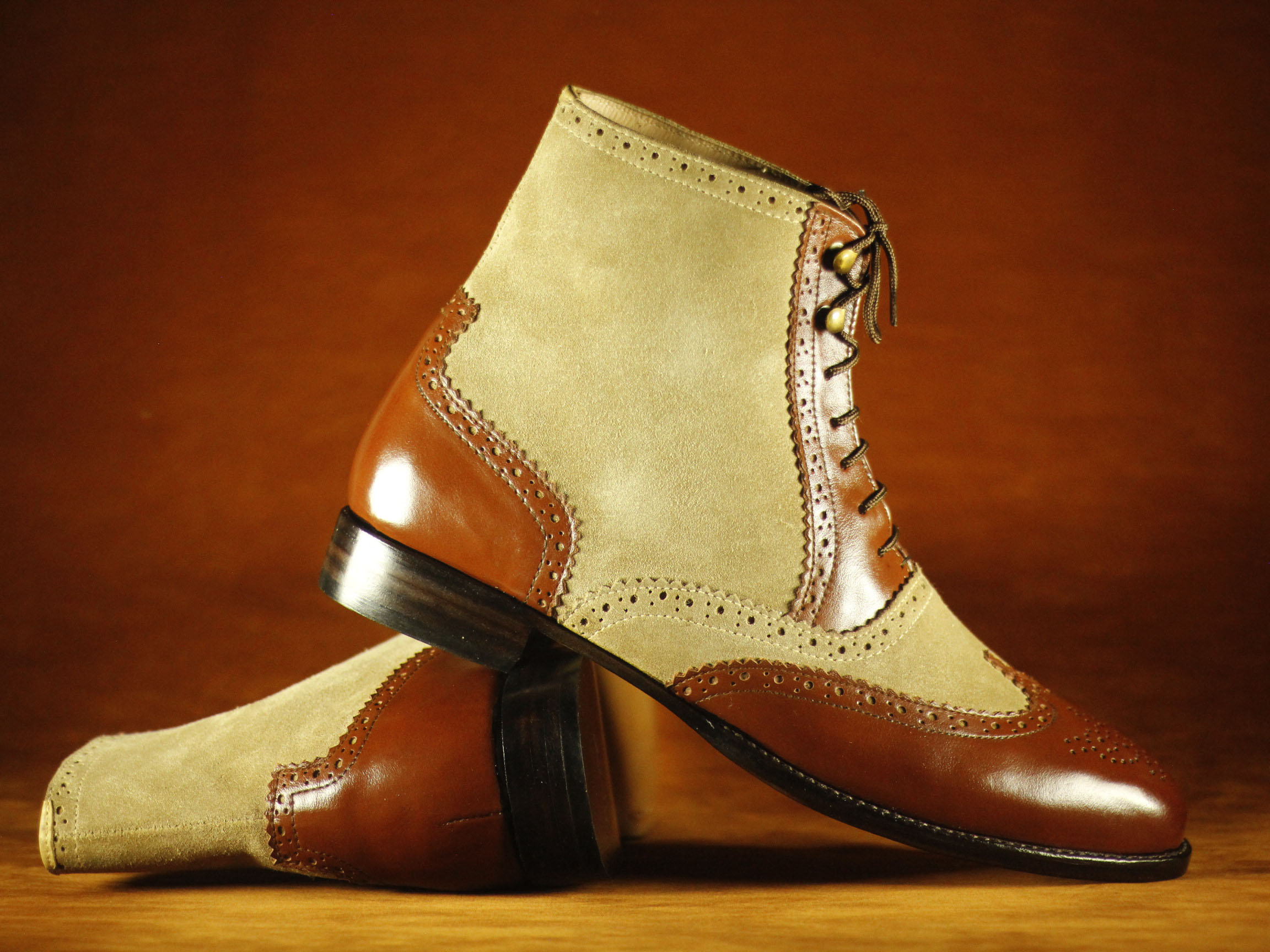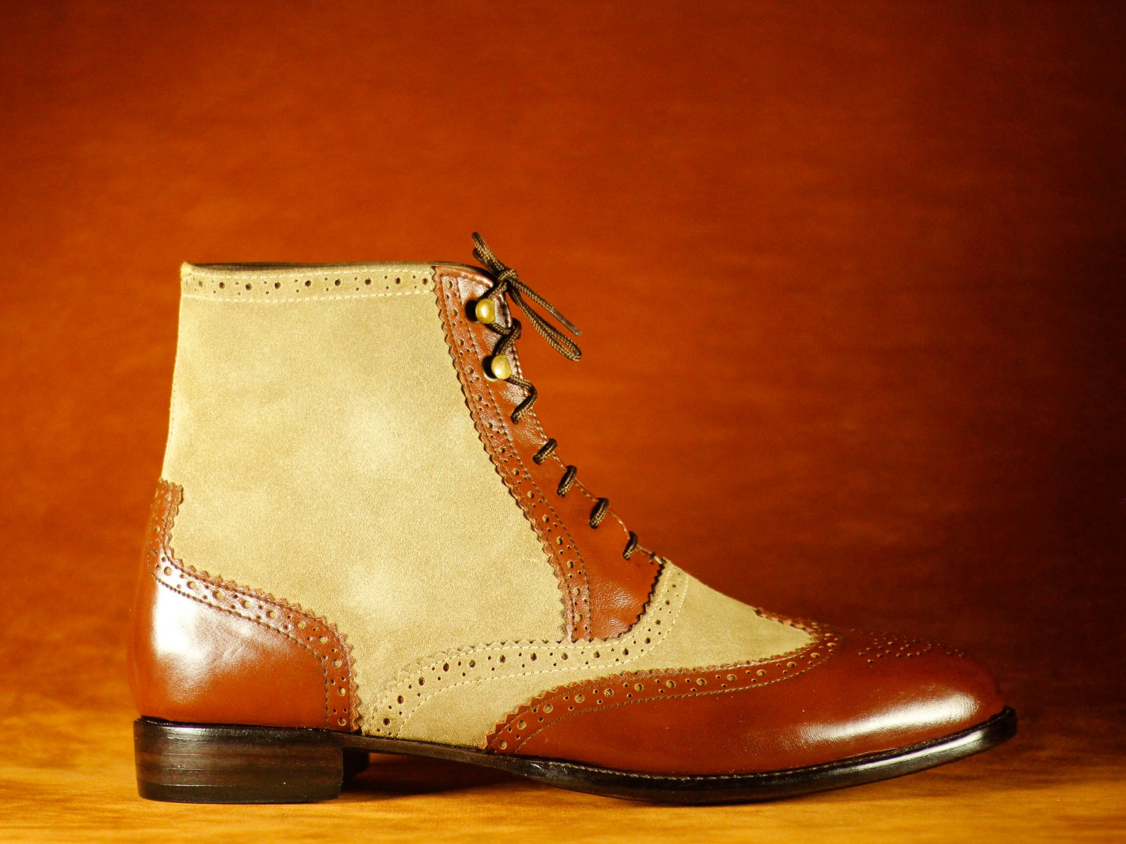 New Men's Handmade Beige Brown Ankle High Suede Leather Lace Up Oxford Boot