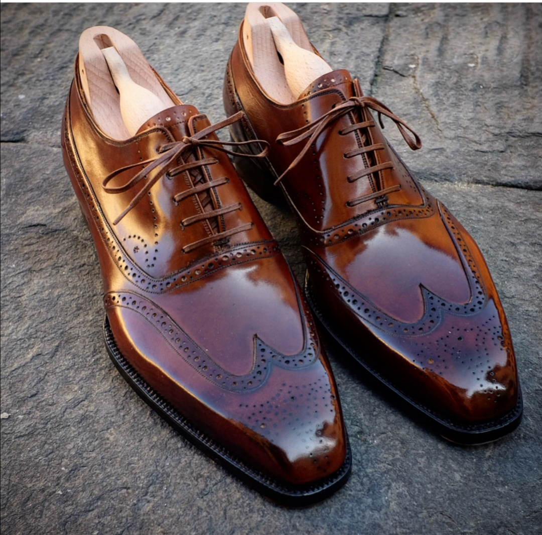 Oxford Wing Tip Brogues, Men Handmade Dress Formal Shoes, Brown Lace up Office hoes