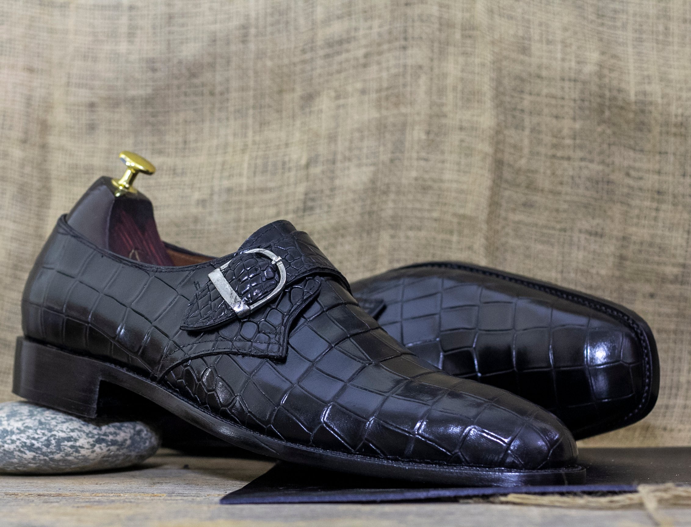 Handmade Black Monk Alligator Shoes, Dress Alligator Shoes