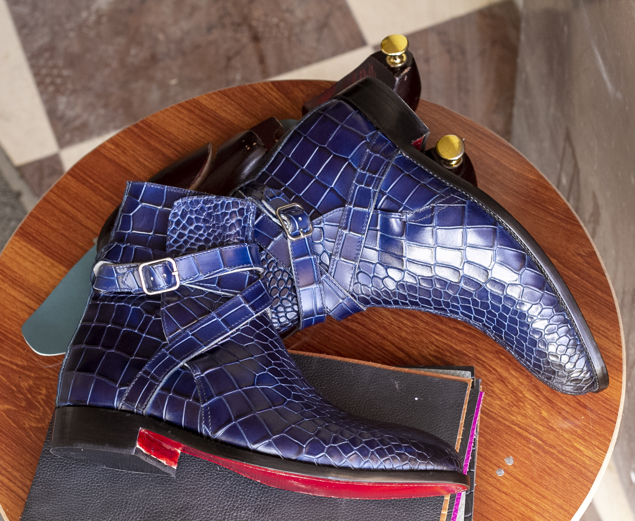 Men's Blue alligator Leather Ankle Boots Boots Ankle Boots, Jodhpurs alligator Leather Boots