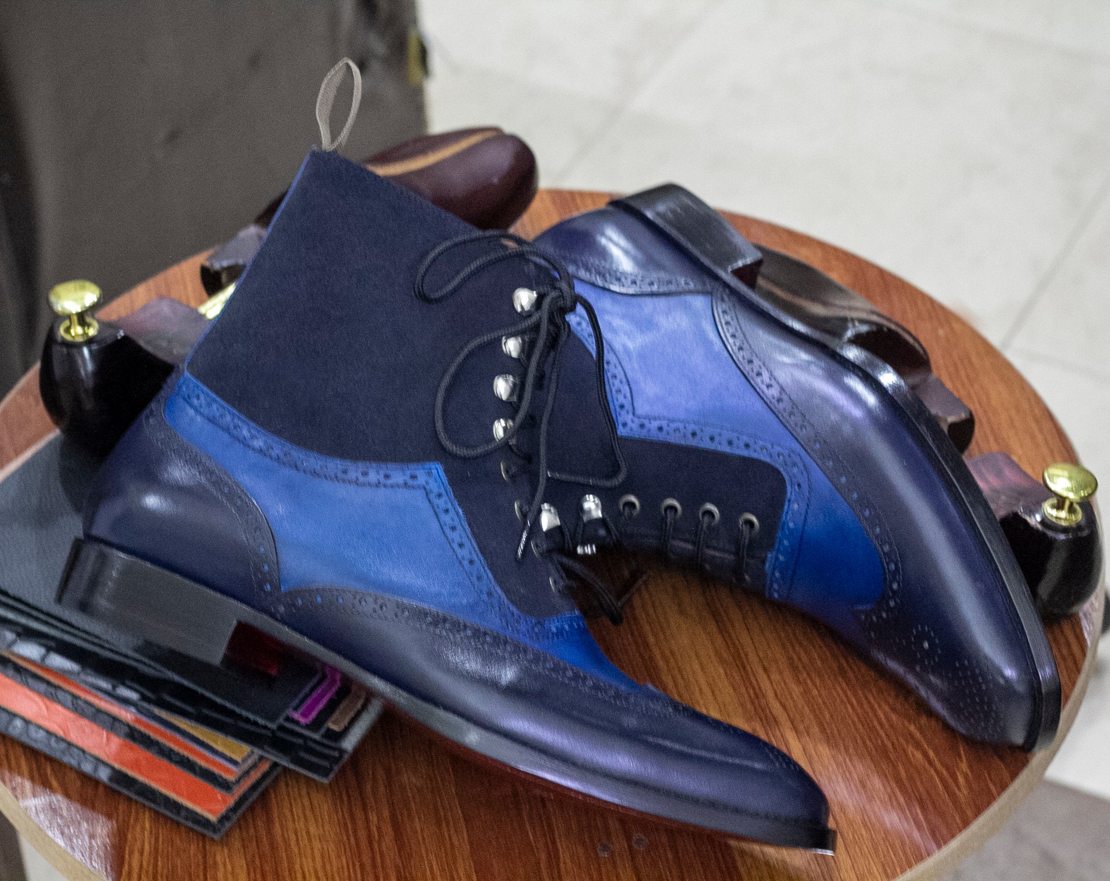 New Handmade Navy Boots, Two Tone Leather Boots, Dress Leather Boots