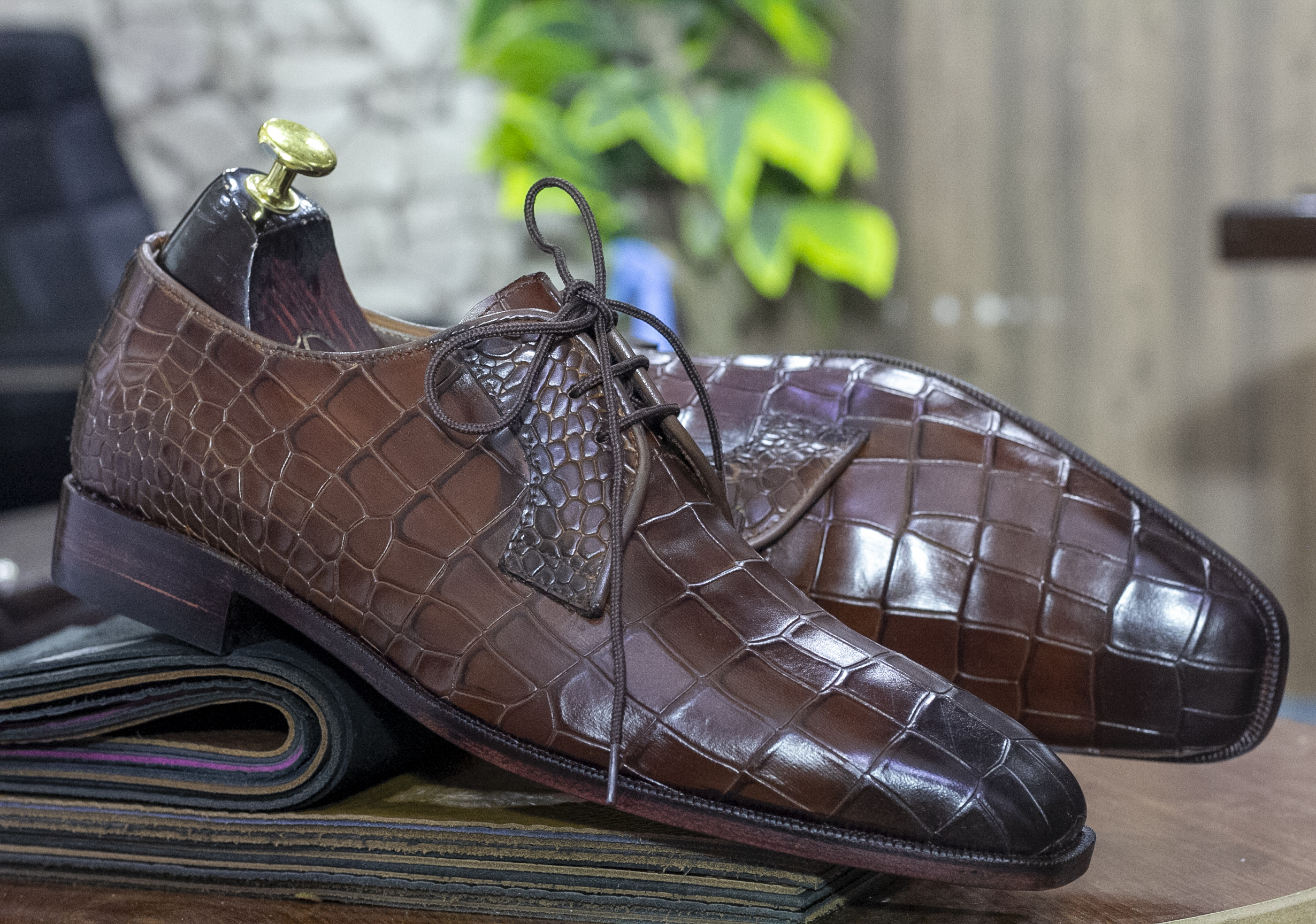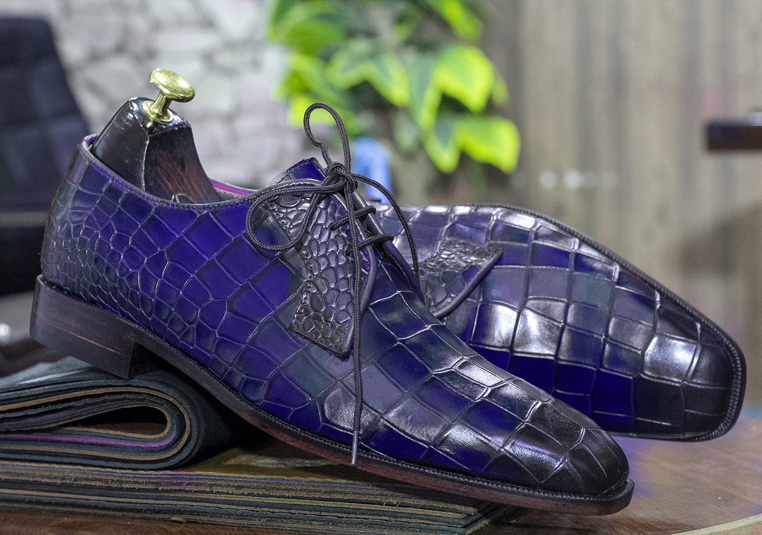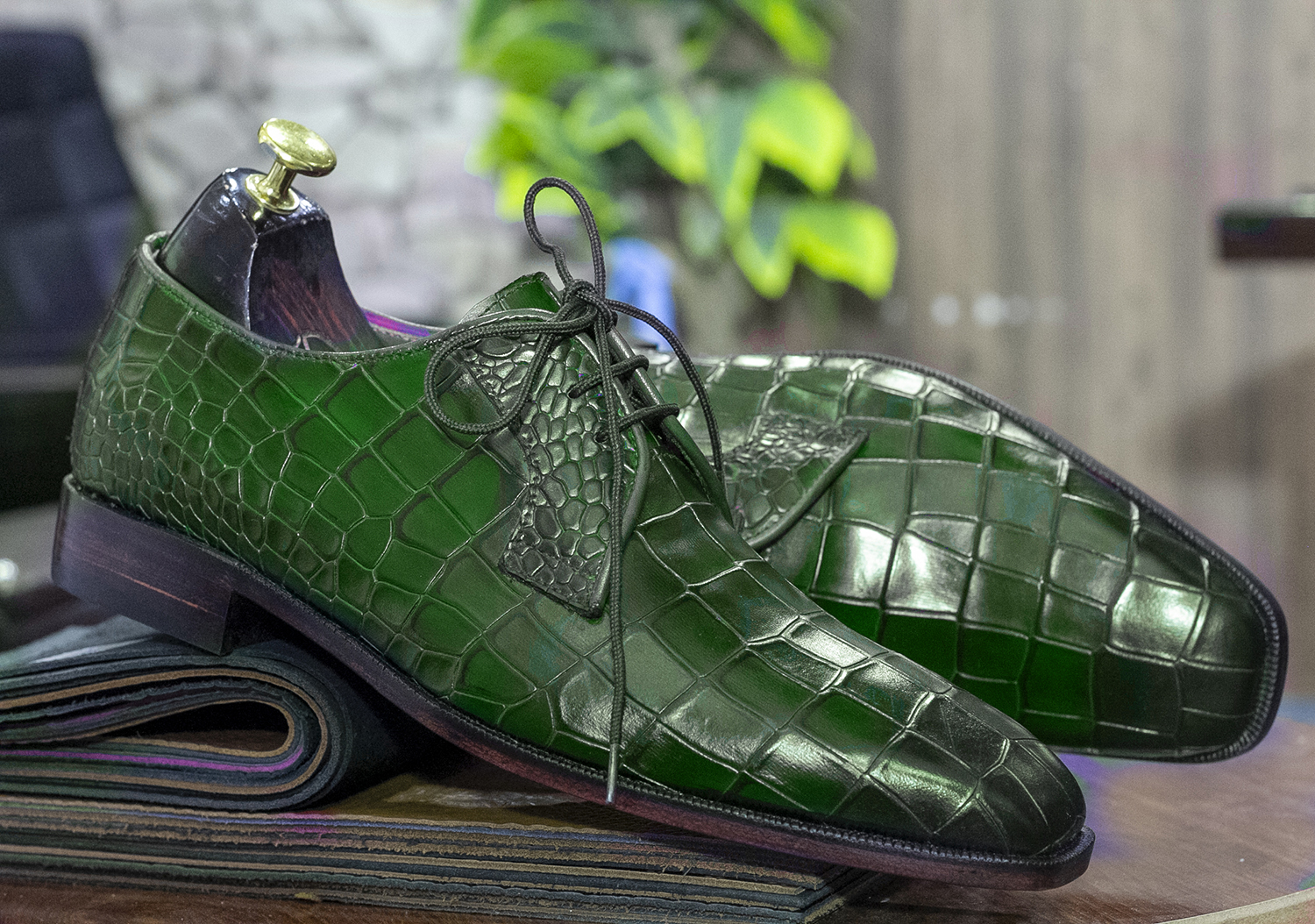 Handmade alligator Texture Leather Derby Shoes , Dress Formal Shoes, Green Two Tone Shoes