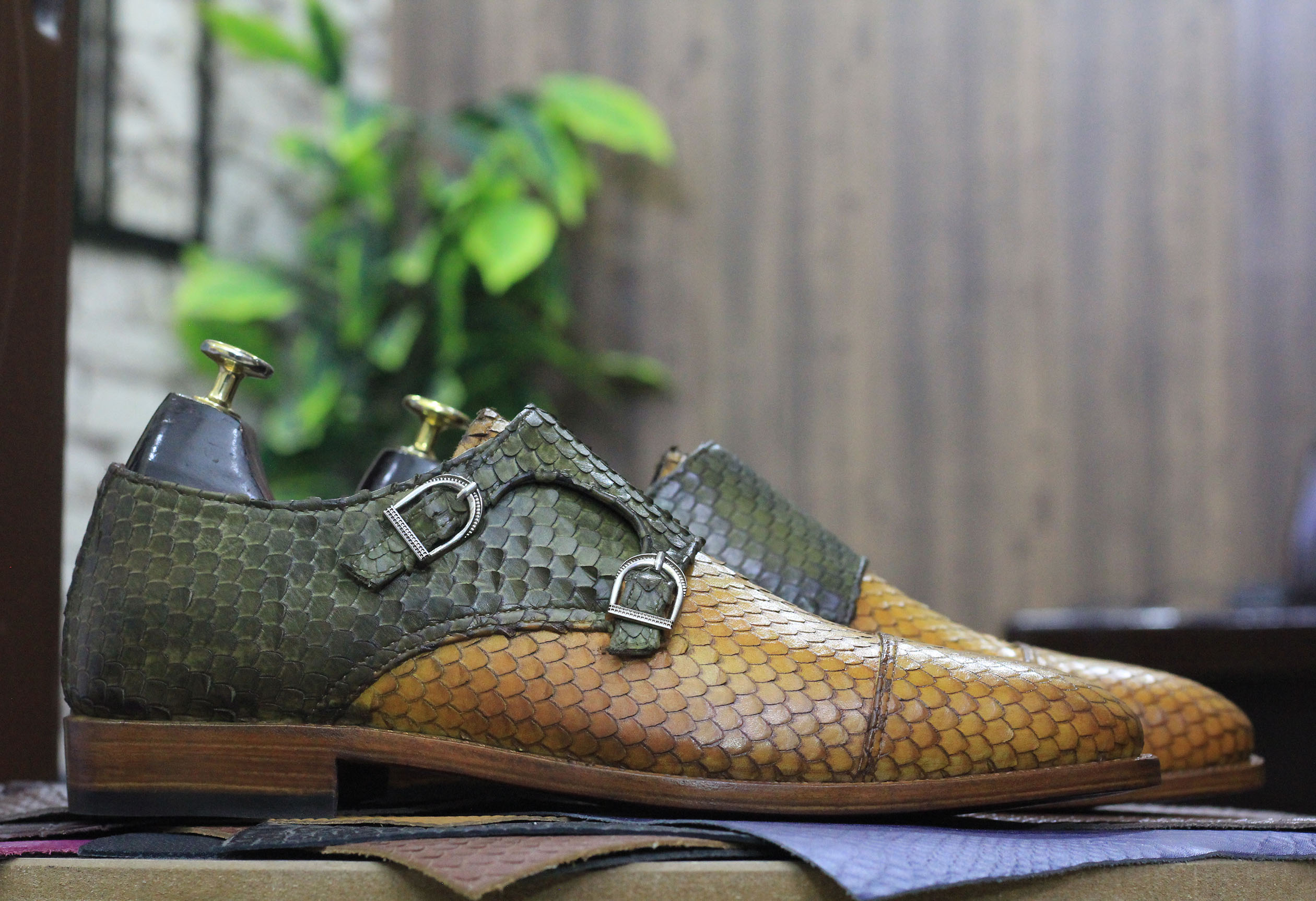 Handmade Men's Python Texture Derby Dress Shoes, Monk Leather Shoes