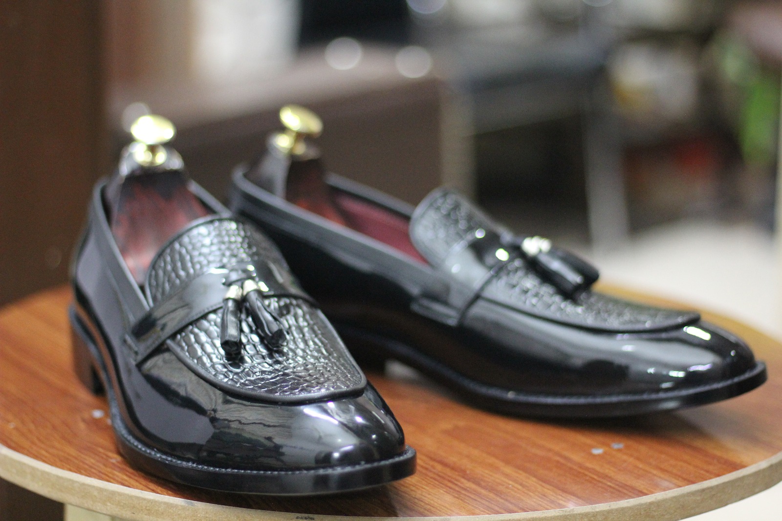 New Fashion Beautiful Patent and Alligator Print Texture Handmade Leather Tussle Loafer Shoes for Men's