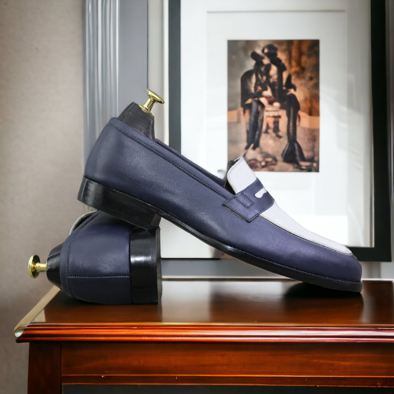 Men's Penny Loafer New Stylish Blue and White Colour Genuine Leather Shoes