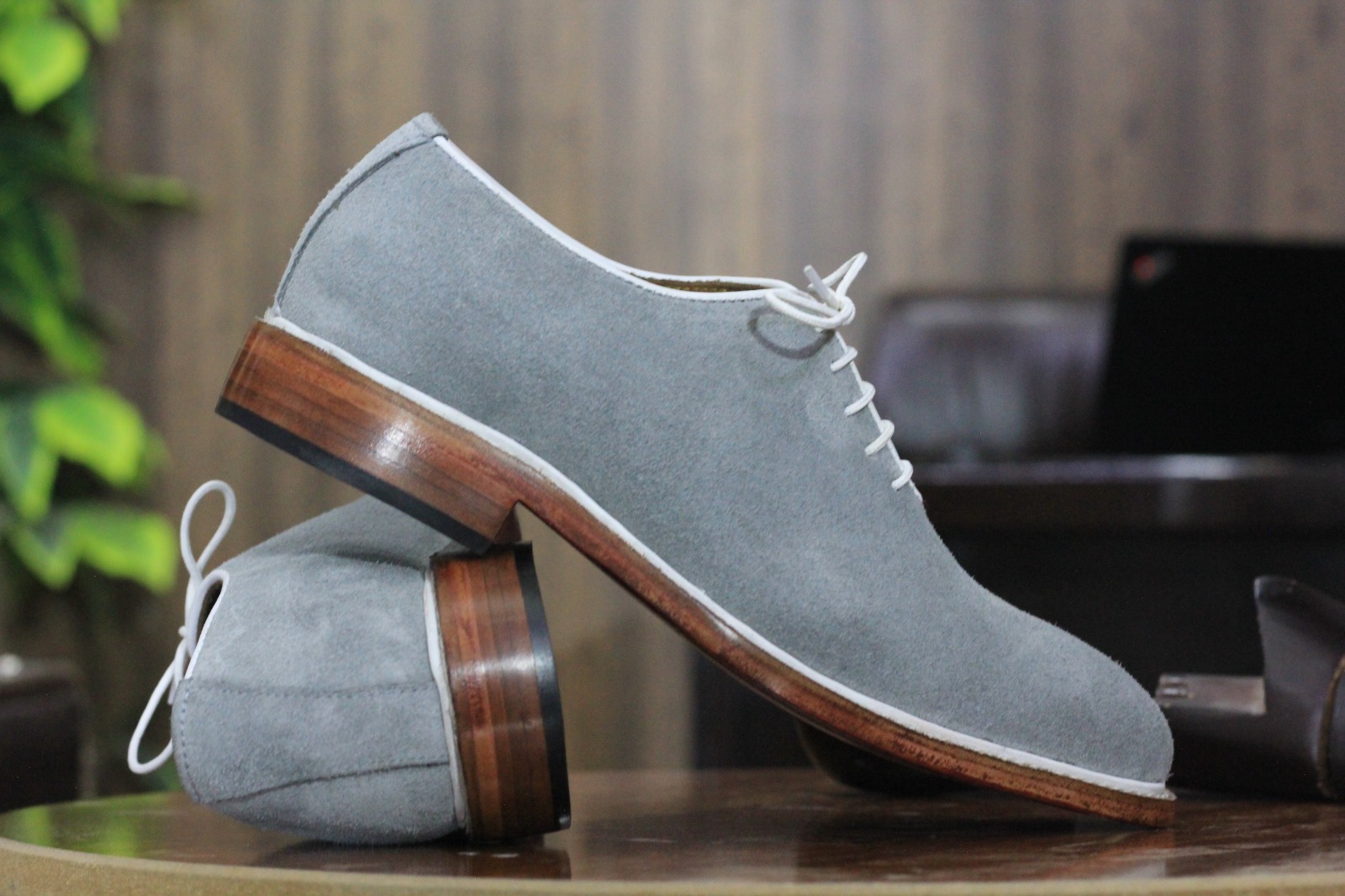 Men's Bespoke Lace Up Style Grey Color Genuine Suede Classic Shoes