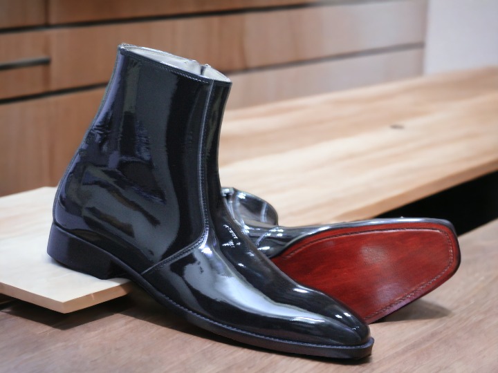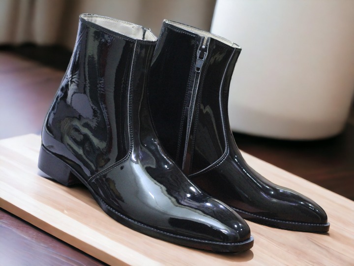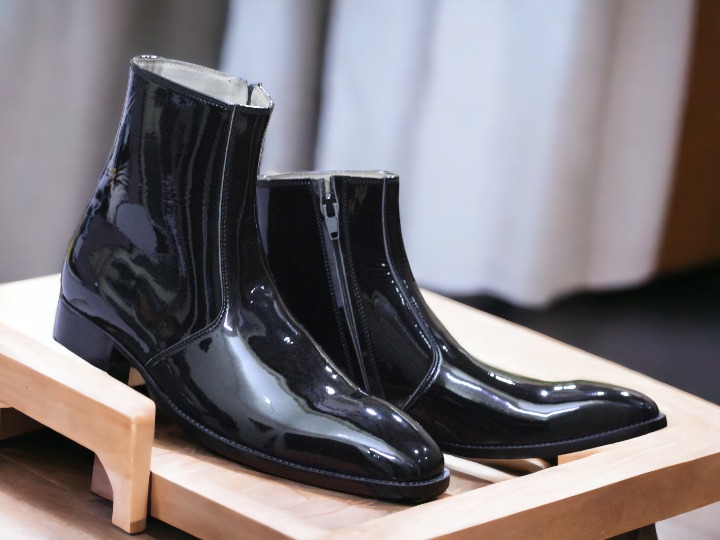 Black Color Stylish Side Zipper Style Patent Leather Men's Designer Boots