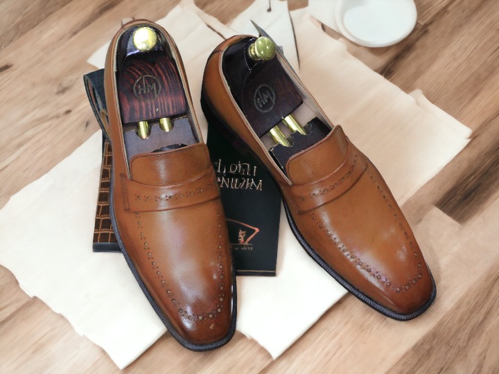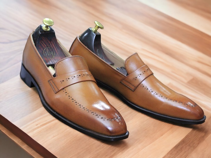 Men's Handmade Tan Color Genuine Leather Party Wear Loafer Shoes