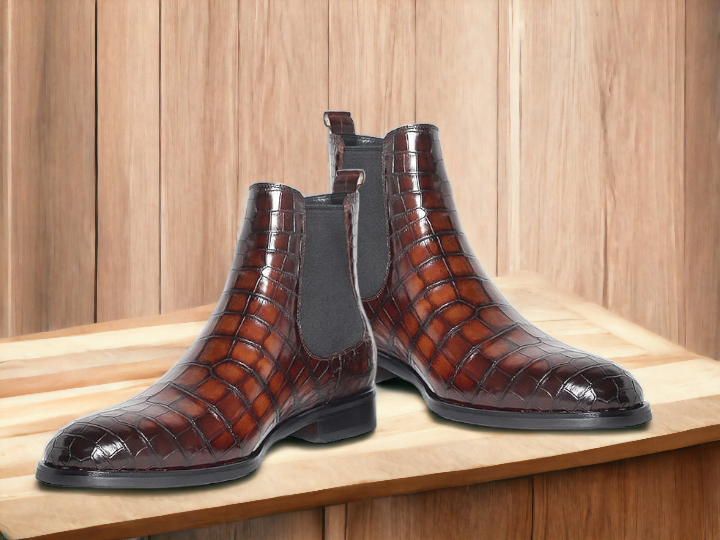 Men's Bespoke Handmade Alligator Texture Leather Chelsea Style Designer Boots