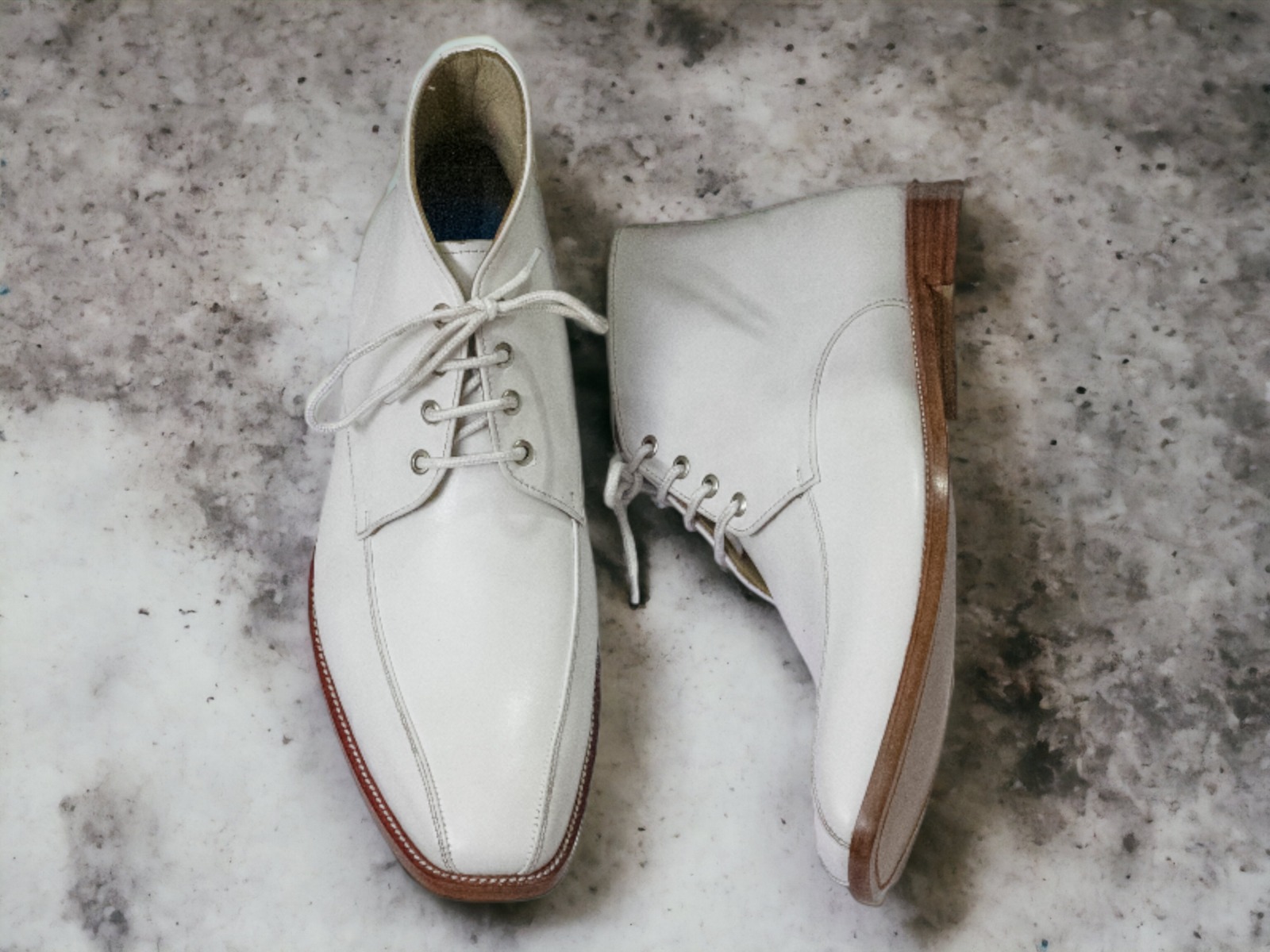 Handmade White Color New Stylish Chukka Lace Up Men's Designer Classic Boots