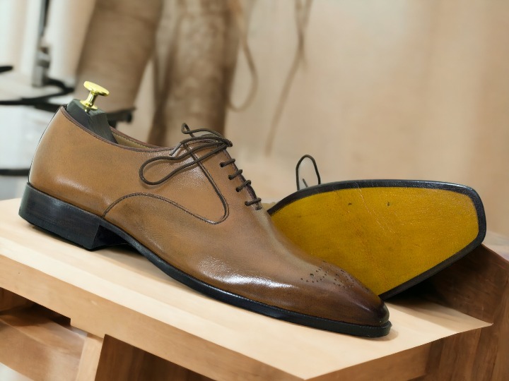 Bespoke Lace Up Cap Toe Men's Two Shaded Brown Color Genuine Leather Shoes