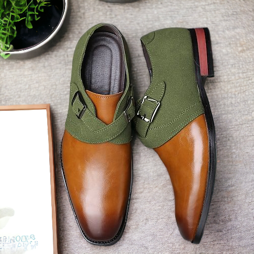 Two Tone Color Double Monk Style Men's Handmade Leather Suede Classic and Luxury Shoes
