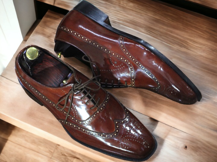 Bespoke Men's Chocolate Brown Wing tip Brogue Toe Lace Up Shoes, Dress Shoes