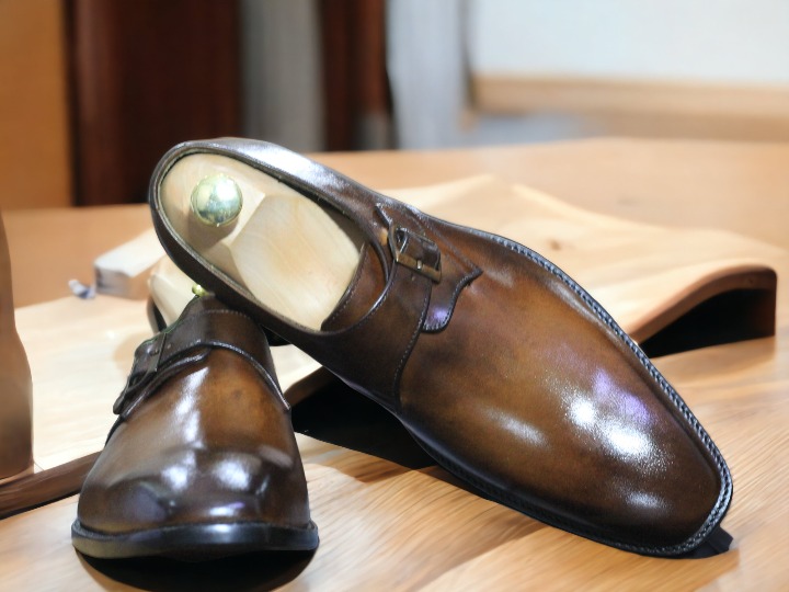 Bespoke Men's Single Buckle Brown Leather Loafers Shoes, Slip On Moccasin Shoes