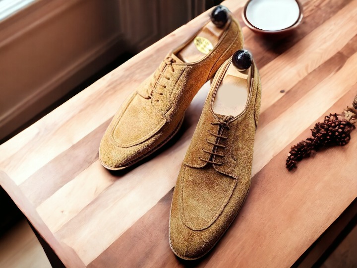 Hand Painted Men's Beige Suede Lace Up Dress Office Shoes