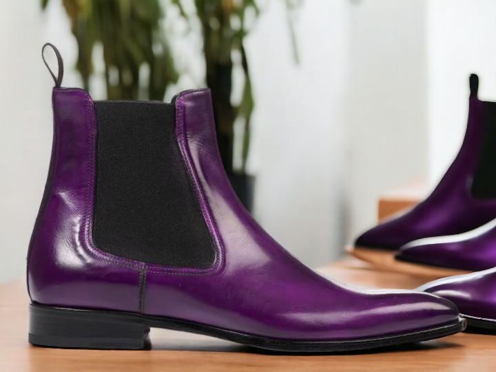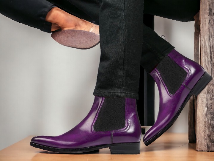 Ankle High Handmade Purple Chelsea Leather Classic Boot