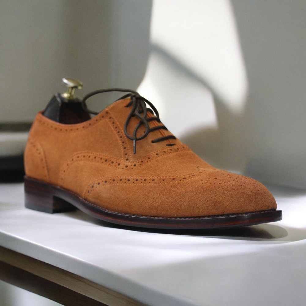 Handmade Office Business Oxford Lace Up Shoes Men Wing Tip Suede Leather brown Boot