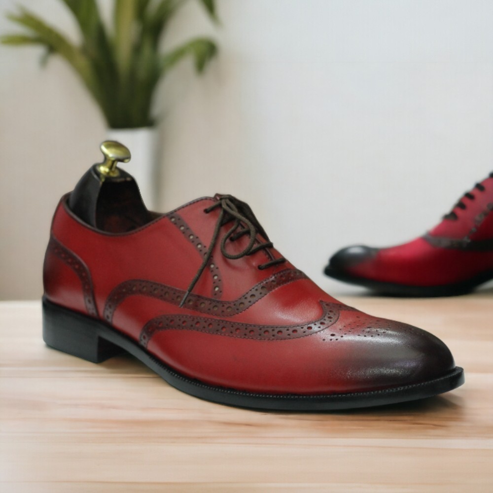 Handmade Men's Burgundy Leather Wing Tip Oxford Shoes
