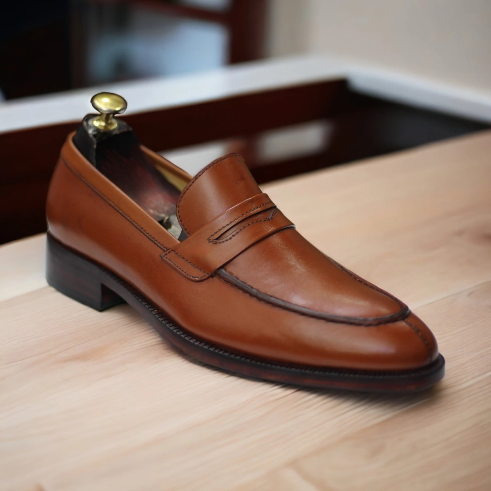 Men's Handmade Two Tone Brown Casual Penny Loafer Shoes