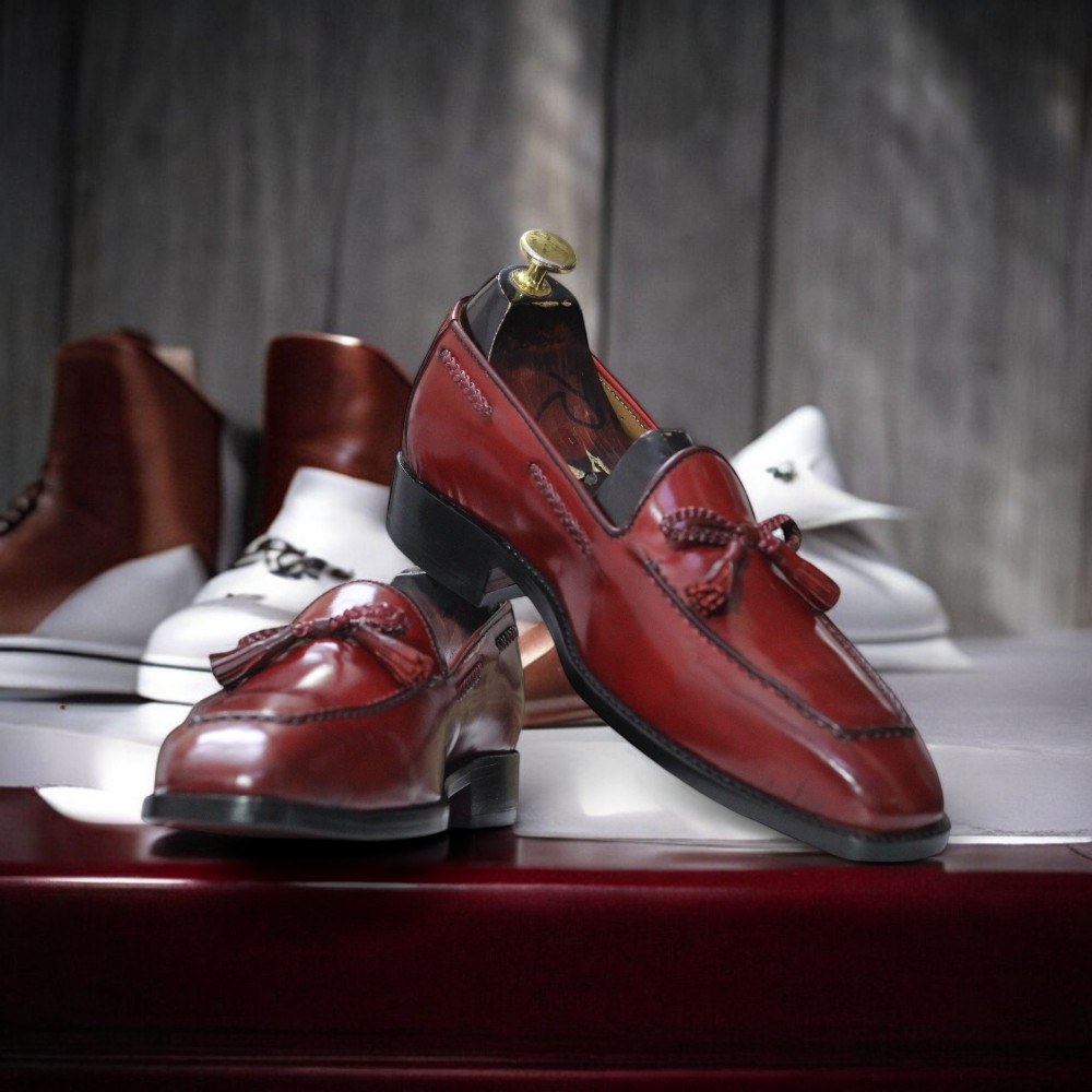 Handmade Men's Burgundy Genuine Leather Shoes,Loafer Tussle Shoes