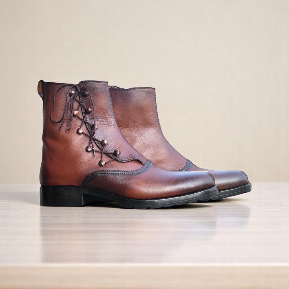Men's Handmade Brown Leather Boot, Ankle High Dress Boot