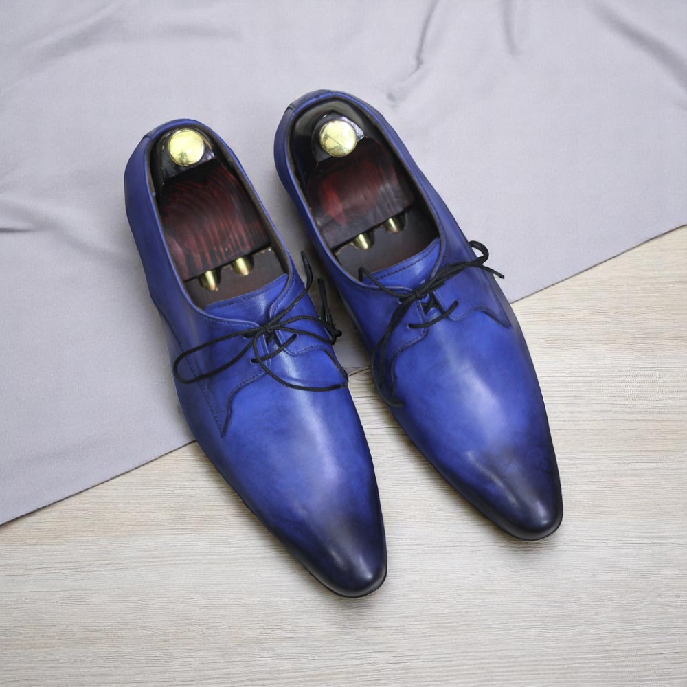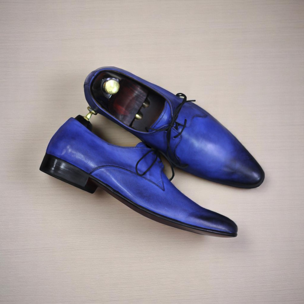 Handmade Blue Pointed Toe Shoes, Full Grain Leather Shoes